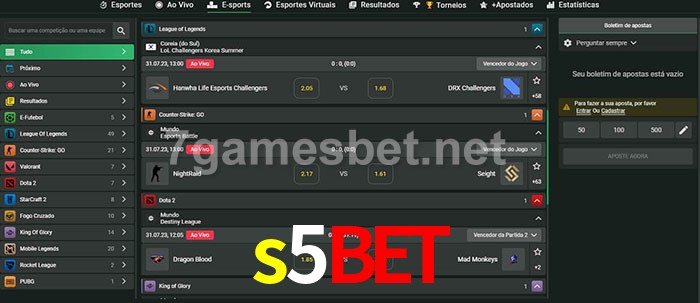 O s5bet oferece uma grande seleção de opções de apostas em e-sports com probabilidades competitivas